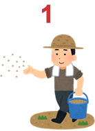 ●手散布、粒剤散布機、無人ヘリコプター、ドローンなど様々な方法で散布できます。