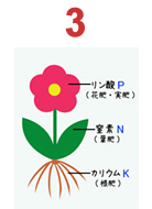 体内に余っているチッ素を光合成で消化させます。さらにリンカリを与えると花を多くつけるようになります。